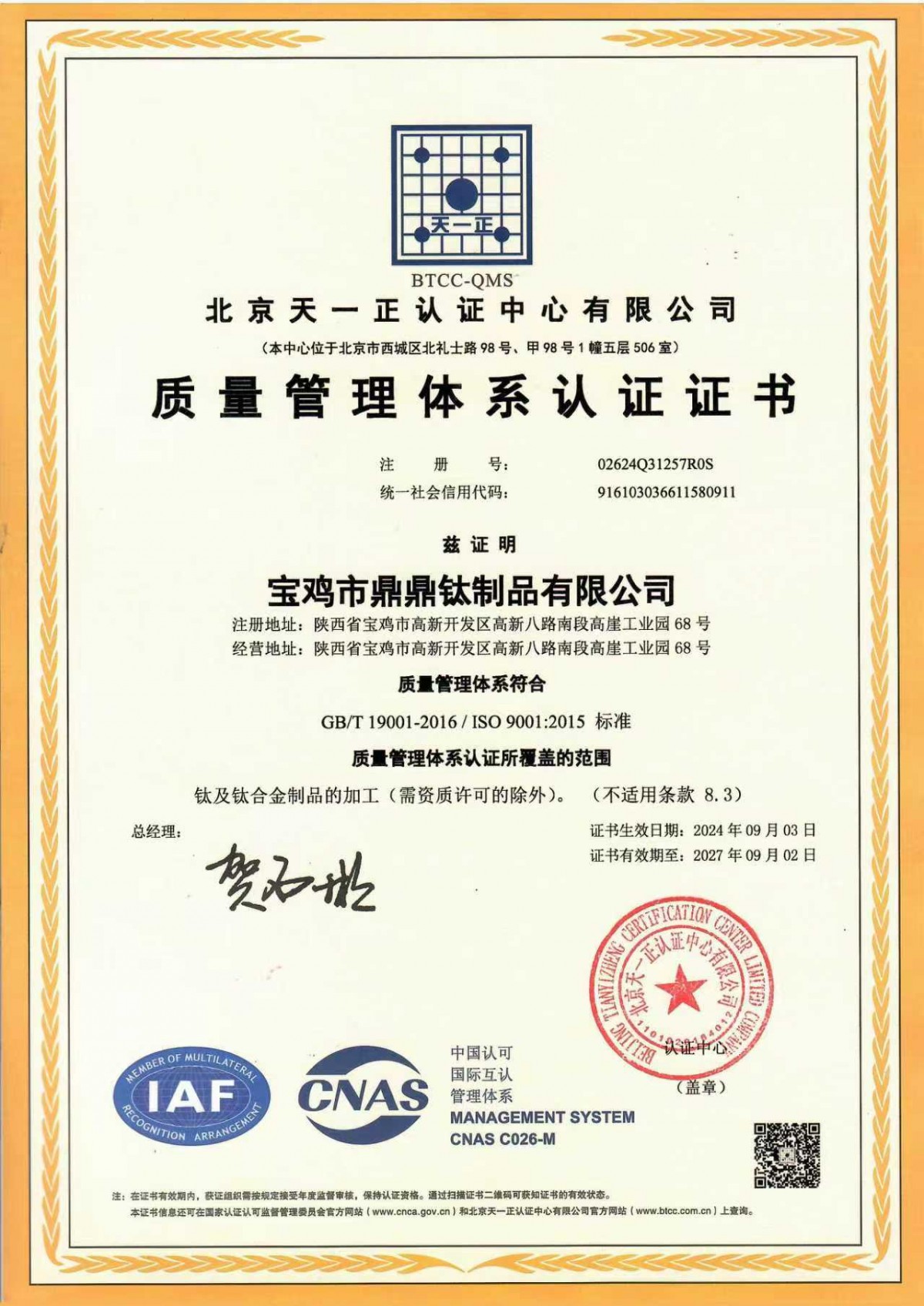 Chinese version of 9001 quality s...