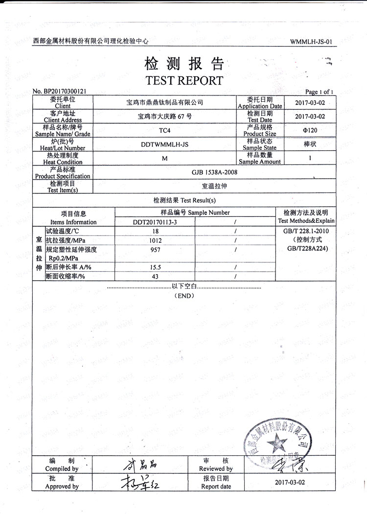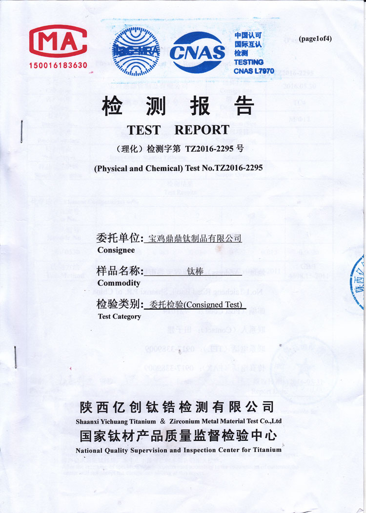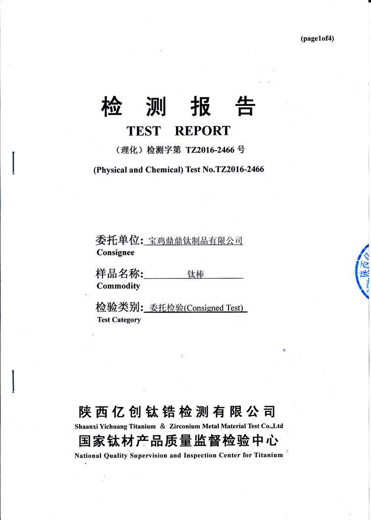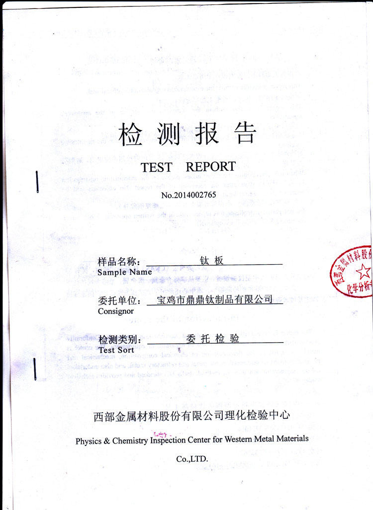 Test report of bt1-0 titanium plate 2.0 exported to Russia