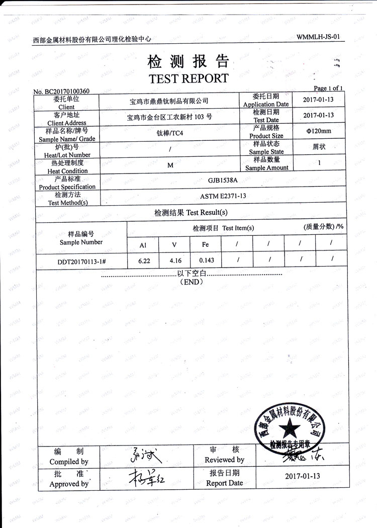 Contact UsAddress:No. 68, Gaoya Industrial Park, Baoti Road, Gaoxin Eighth Road, High tech Zone, Baoji City (Map navigation search for Baoji Dingding Titanium Products Company)Sales Call:+86-917-3412107 3414107For major clients, please dial:+86-18091715917Foreign trade email:www@bjddt.com sales@bjddt.comMonday to Friday:8:00-18:00Saturday: 9:00-15:00(except holidays) |