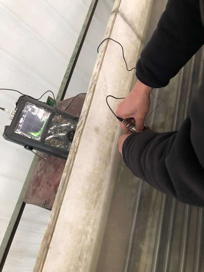 二、检验区 以下是检测员正在用“涡轮探伤检测仪”对医用TC4钛棒进行产品表面裂纹及缺陷进行探伤检测。
