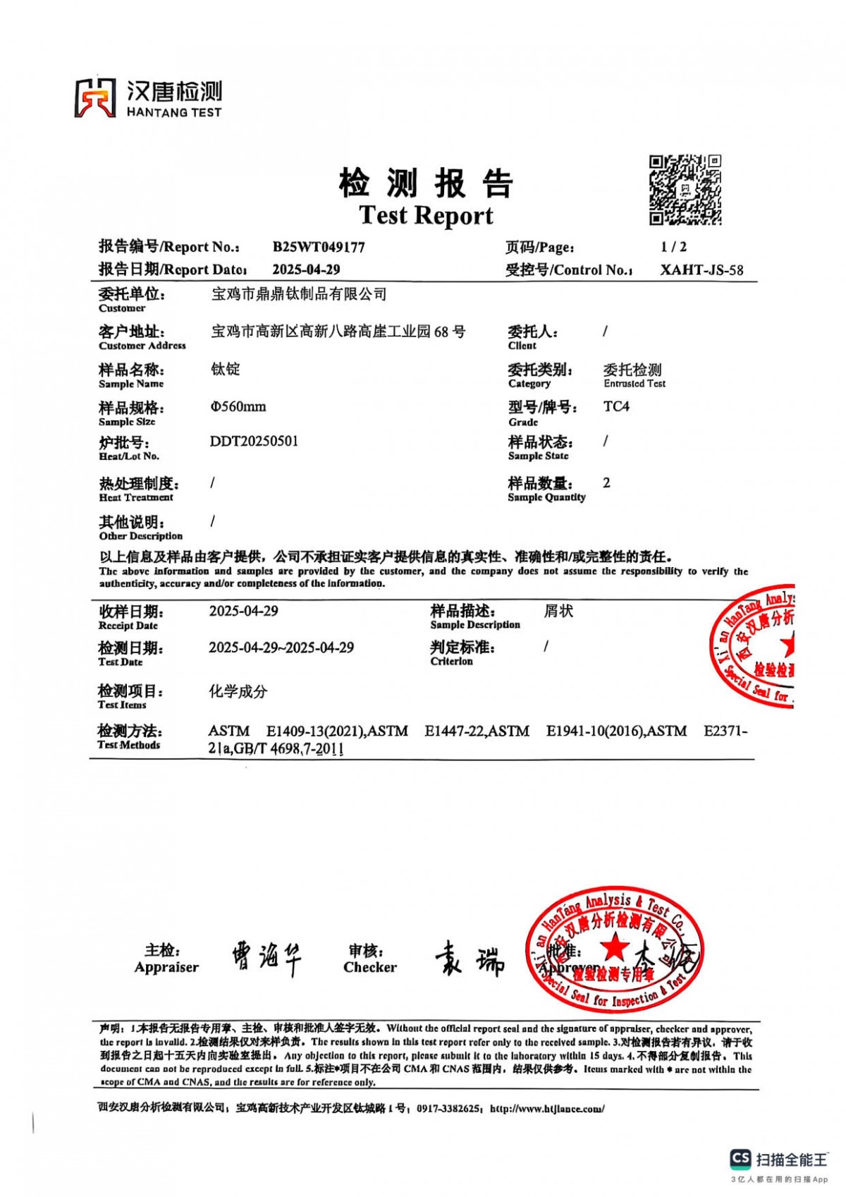 [上一篇] TA4G 医用¢4.0 钛丝检测报告