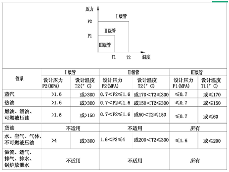 注:(1)货油管一般采用Ⅲ级管;(2)美国船级社(ABS)与中国船级社(CCS)管子等级划分是一样的;(3)排舷外管使用Ⅰ级管;(4)不受压的开式管路如泄水管、溢流管、排气管和锅炉放汽管等一般定为Ⅲ级管。 目前使用Ⅰ级和Ⅱ级管系的场合主要有:液压系统高压部分(如P、A、B管),排舷外管,压缩空气高压部分,泥浆系统,热油系统,货油系统等。由于Ⅰ级和Ⅱ级管系购买时间长,价格昂贵,购买的时候不会留太多余量,需节约用料,没有使用完的料需要及时退还仓库。 Ⅰ级和Ⅱ级管系需要船级社证书(入级ABS规范中的液压管除外)。