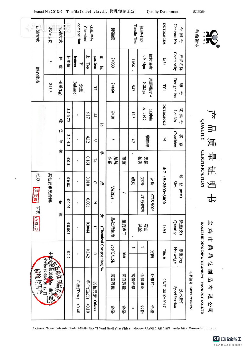 [上一篇] 钛棒交付成果