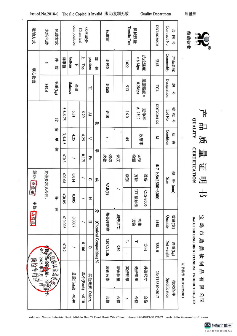[下一篇] 医用钛棒¢16实际发货