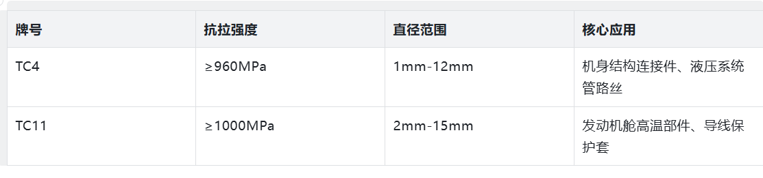 2. 骨科植入钛丝(TC4/TC4 Eli牌号) 专为骨科手术研发,用于骨折复位固定的克氏针、斯氏针等部件制造,遵循ISO 5832-3标准,抗拉强度≥1200MPa,延伸率≥5%,直线度≤0.5mm/m,确保骨折固定的稳定性与可靠性。 - 规格:直径0.5mm-4mm,长度20mm-2500mm,支持一端磨尖、倒角等定制加工 - 优势:生物相容性优异,可与骨组织形成稳定结合,无磁性不影响术后影像检查 3. 航空轻量化钛丝(TC4/TC11牌号) 适配国产大飞机、无人机等航空装备需求,凭借“轻量化+耐高温”特性,较钢制丝减重50%,耐温上限达400℃,抗疲劳性能优异,可承受10⁷次压力循环,用作航空结构连接件与导线。